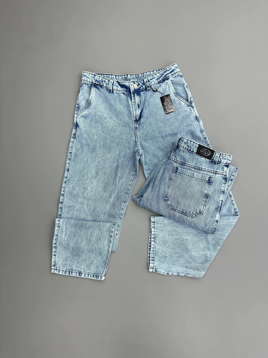 Calça 4TICITY®️ Jeans - Denim Azul Estonada Corte Reta (Balão)