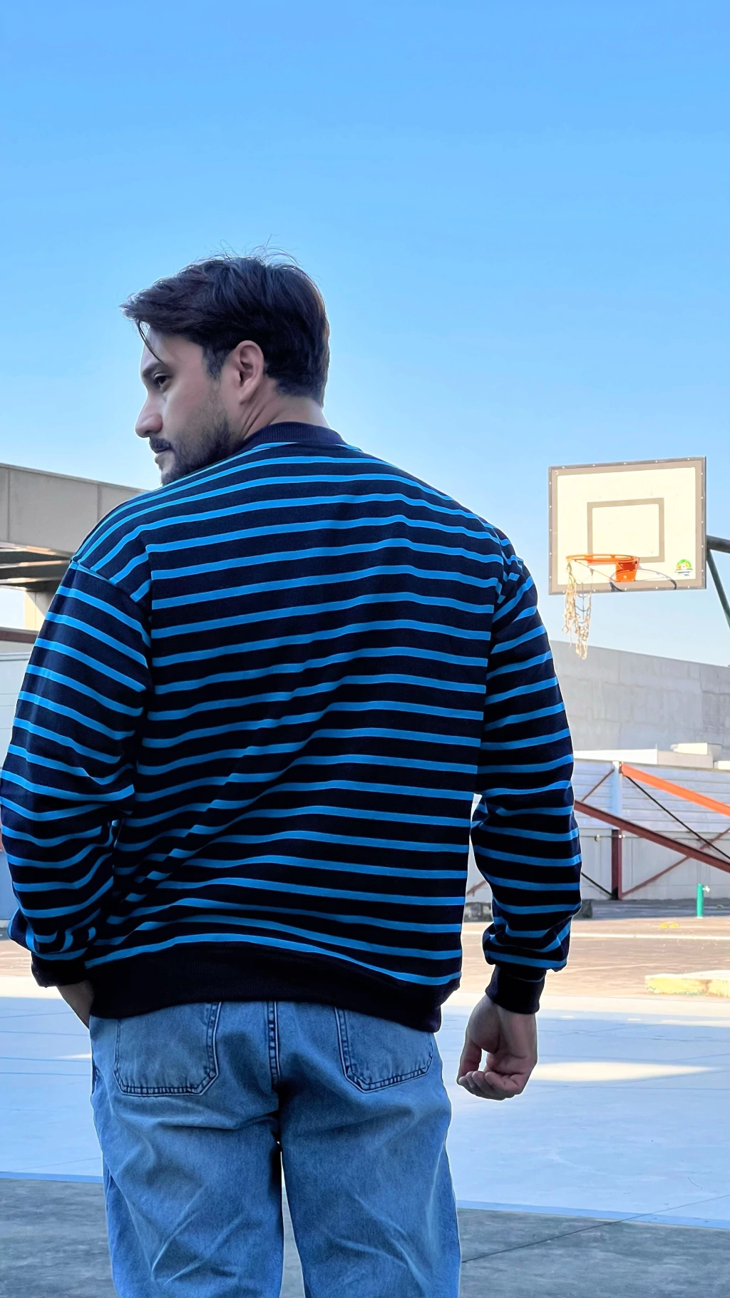 Descubra o Moletom 4ticity®️ Listrado Azul Gola Careca, uma peça que une estilo e conforto com perfeição. Seu design oversized traz um caimento moderno e descontraído, ideal para quem busca autenticidade no visual do dia a dia.